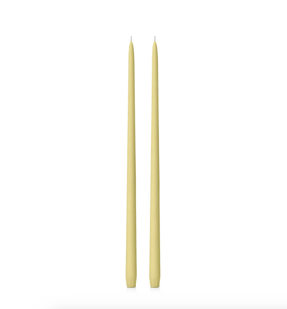 Elevate your ambience with our Hand-Poured Unscented Taper Candles. Standing at 45 cm tall with a 2 cm diameter, they are crafted from renewable plant-based wax, dyed naturally, and features a braided cotton, lead-free wick. Enjoy a clean, long-lasting burn.
