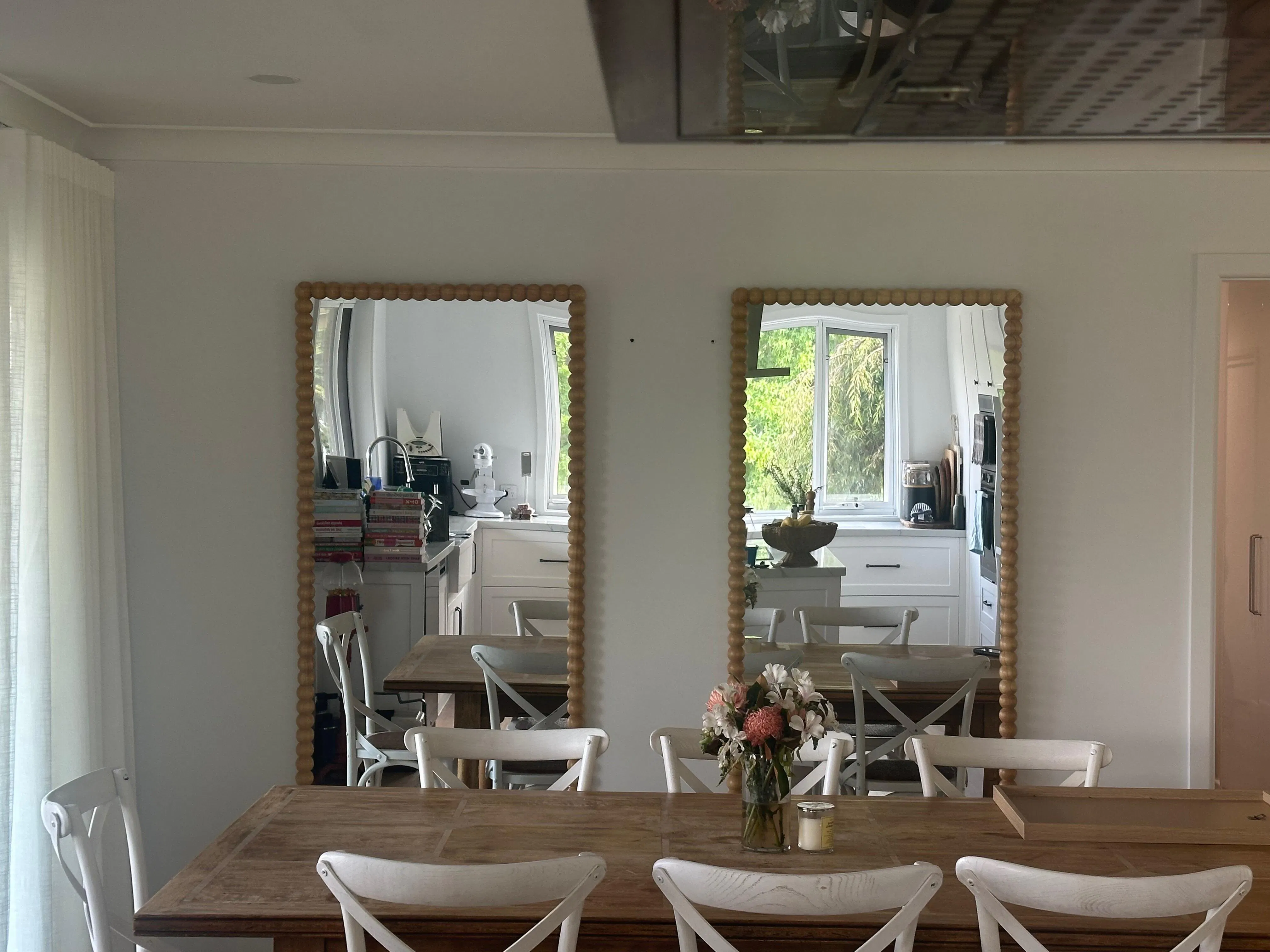 Large gorgeous floor mirror with bauble edging.