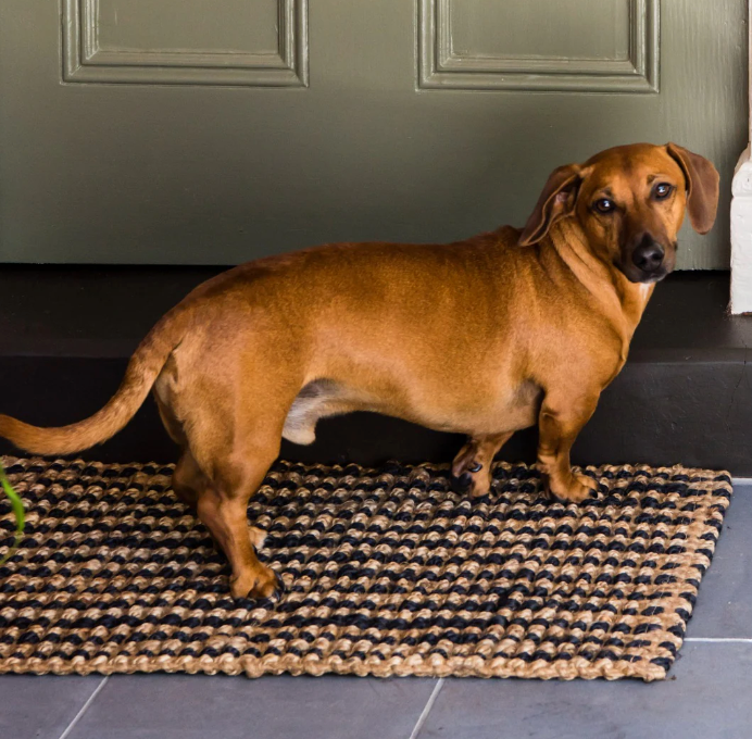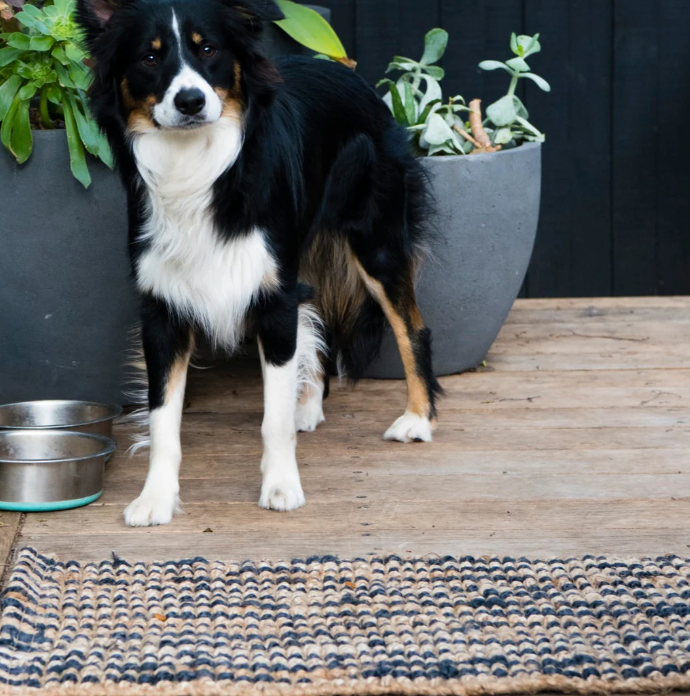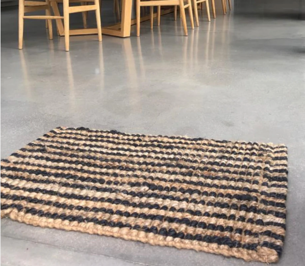 The Caravan doormat is a chunky graphite and natural striped jute. These doormats are handy, practical and stylish! Perfect for outdoor under cover.