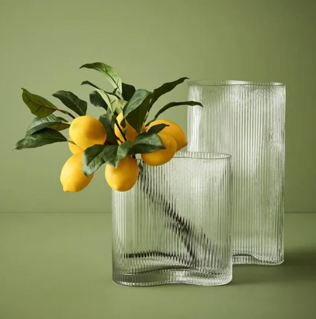 Our vase ripple curve is the perfect modern vessel to style your artificial stems in any space. Select from our extensive range of artificial stems to compliment. This glass vase is handmade, due to the nature of handmade items there may be slight variations in the size, surface texture, colour or tone of the vase.