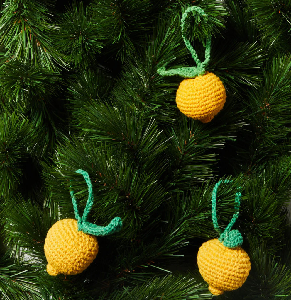 Brighten up your holiday celebrations with this sweet hand-crocheted cotton Christmas tree ornament shaped like a cheerful lemon. Inspired by the zesty fruit that brings to mind freshness and sunshine, our Lemon Christmas Decoration adds a delightful touch to both traditional and modern holiday themes. Cover your tree in lemons, or mix and match this design with other fruit decorations for a tutti-fruity festive look.