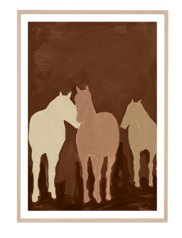 For any horse lover, this hand generated, painterly design is a perfect addition to your wall. The Roaming Herd is an Australian made print that features a white border and a timber frame, strung with a cord and ready to hang.