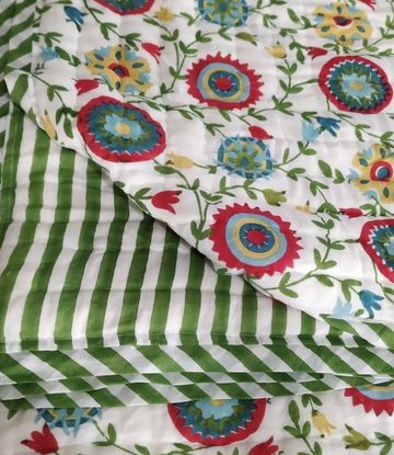 Our best-selling organic cotton quilts are back and reimagined in new fresh prints — hand block printed by skilled artisans in a timeless style.