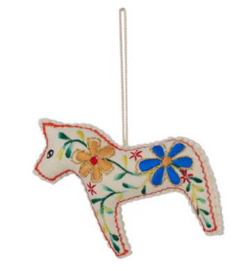 A little bit folk, a little bit fun — this embroidered felt horse is here to gallop straight onto your Christmas tree.
