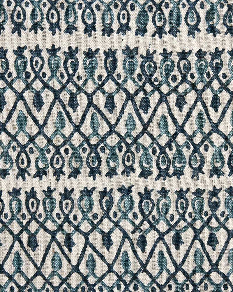 Walter G textiles Babylon Denim Linen fabric front with navy backing and piping.